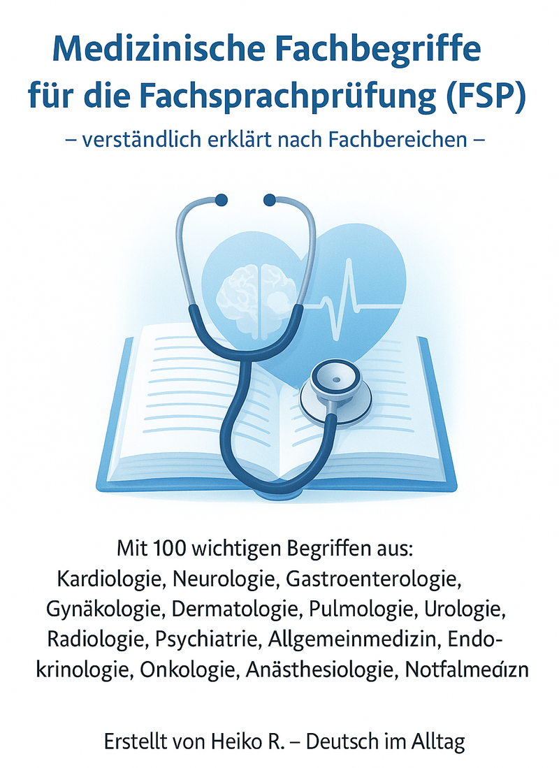 Alle Inhalte stammen aus der Praxis – ergänzt durch Beispiele, typische Prüfungsfragen und sprachliche Tipps für den sicheren Umgang mit medizinischem Wortschatz.